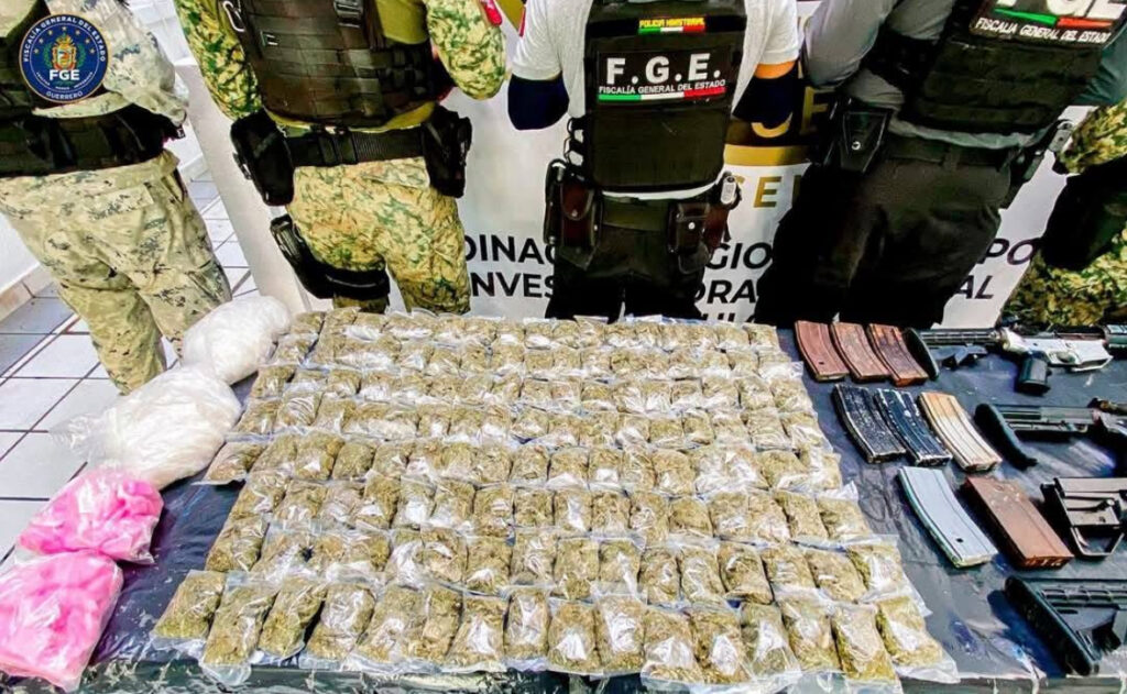 Chilpancingo, Gro., 10 de abril de 2025.– En un fuerte operativo conjunto, fuerzas federales y estatales lograron un importante golpe al crimen organizado en Acapulco, Guerrero. La Fiscalía General del Estado, en coordinación con la Guardia Nacional, la Defensamx, la Secretaría de Seguridad y Protección Ciudadana, así como la Policía Estatal, aseguraron armas de alto poder, cartuchos y una considerable cantidad de droga en la colonia La Laja.