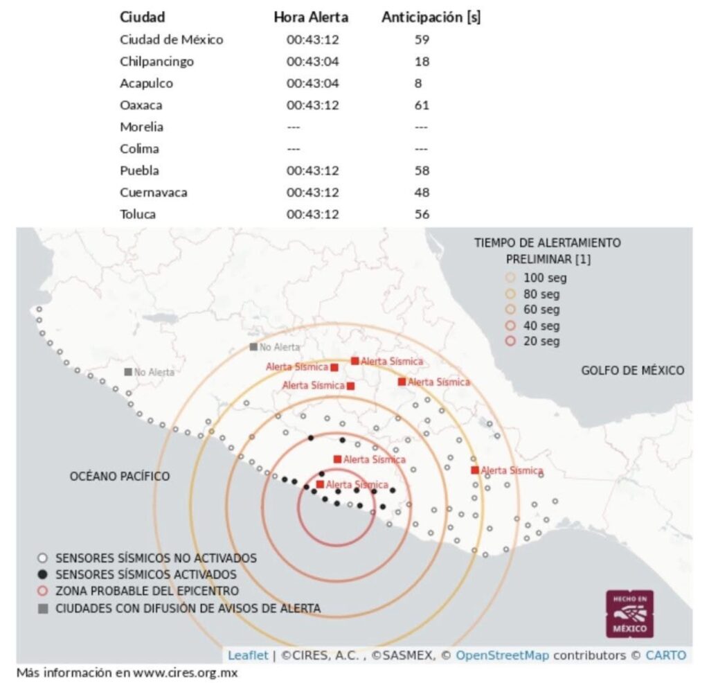 De acuerdo con el informe del Centro de Instrumentación y Registro Sísmico (CIRES), la alerta sísmica se activó de forma automática en distintas ciudades del país, con tiempos de anticipación variables ⏱️: